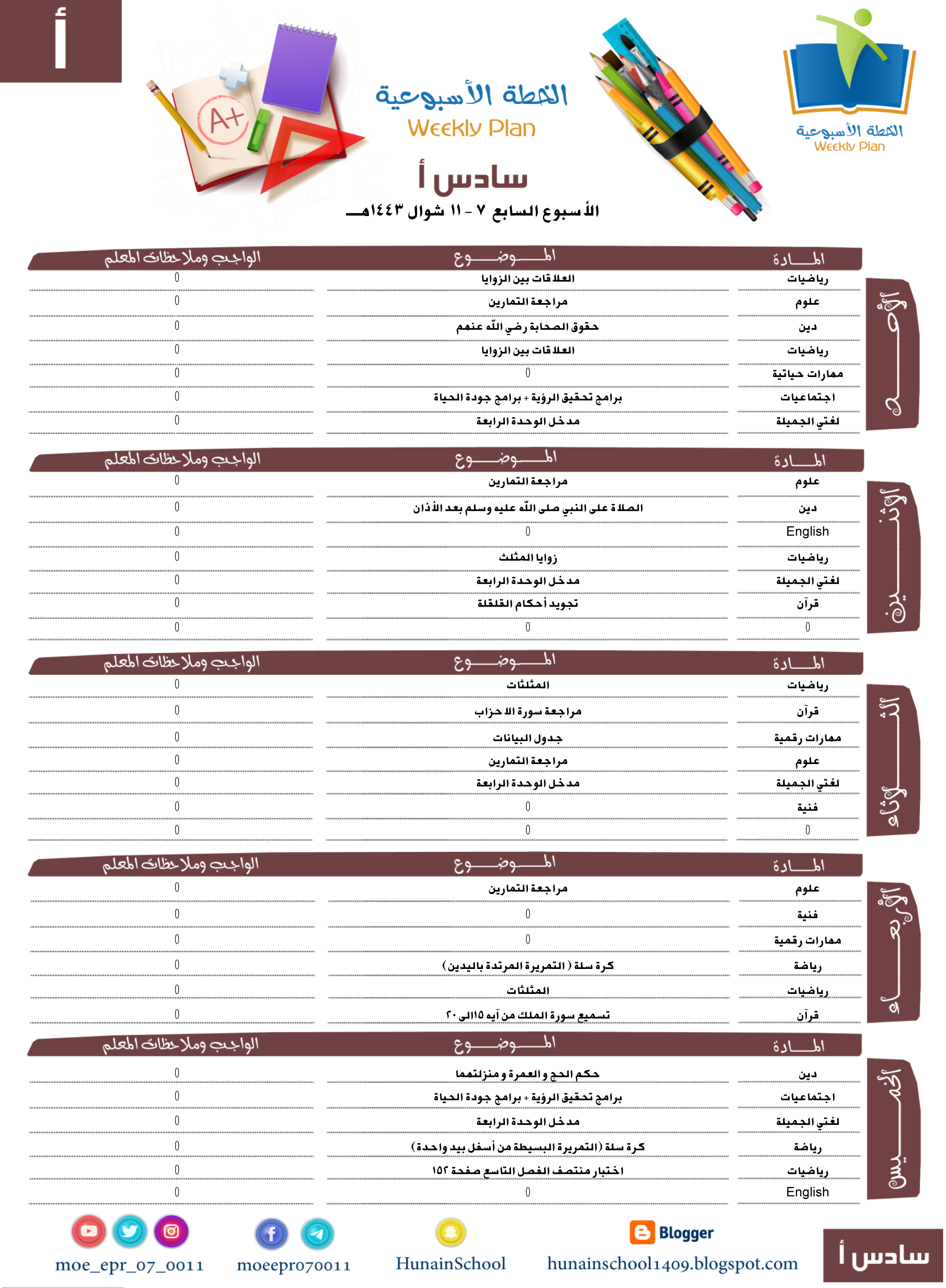 الخطة الأسبوعية - الأسبوع السابع الفصل الثالث 1443هـ في مايو 06, 2022 الحصول على الرابط Facebook X Pinterest بريد إلكتروني التطبيقات الأخرى تعليقات
